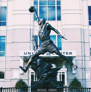 マルコさんの偏愛のきっかけとなった、マイケル・ジョーダンが長年所属していたシカゴ・ブルズのホームアリーナに設置されている「マイケル・ジョーダン・スタチュー」。シカゴを訪れた時に立ち寄ったそう